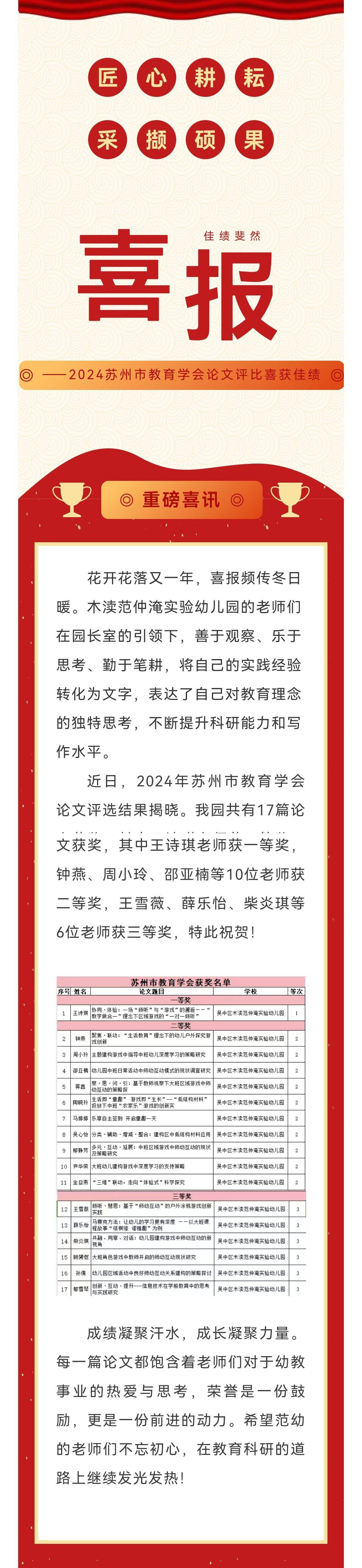 范幼·喜报丨匠心耕耘,采撷硕果 ——2024苏州市教育学会论文评比喜获佳绩