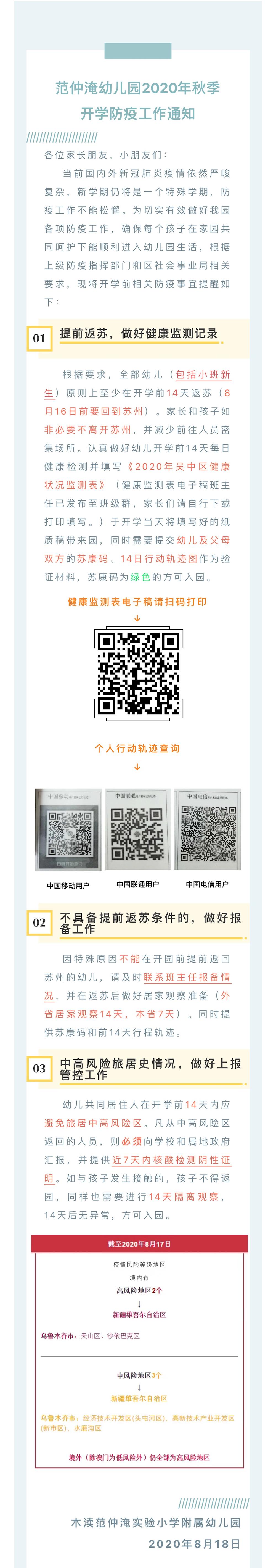 范仲淹幼儿园2020年秋季开学防疫工作通知