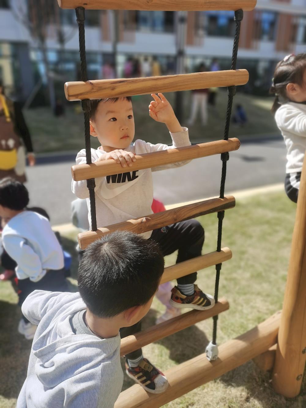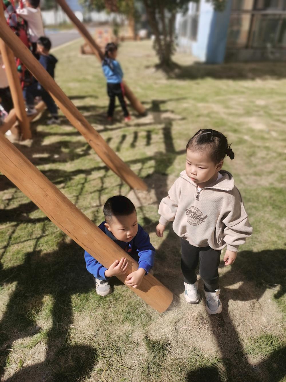 每天都能开开心心的在户外玩耍,攀登架和小山坡,我们来咯……