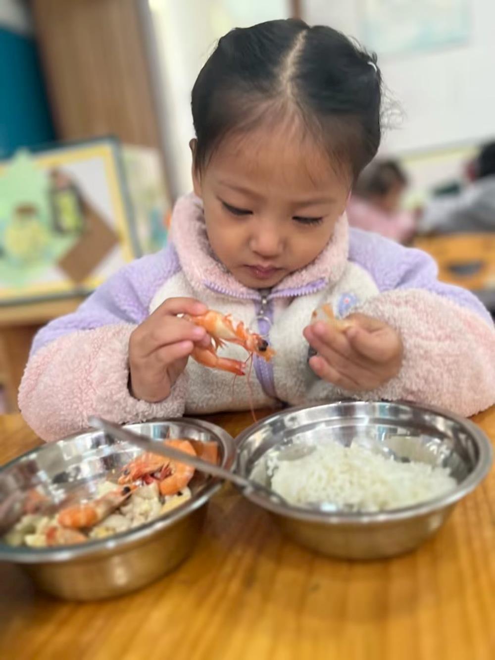 美味午餐进行时 来源: 发布时间:2022-12-02 16:05:26 浏览次数: 次 【字体:小 大】 2022年12月2日:嗷呜嗷呜,大口吃饭,大口吃菜,我很厉害的,剥虾也难不倒我。我要好好吃饭,快快长大,还要长高得很高很高呢。 分享到: 【打印正文】