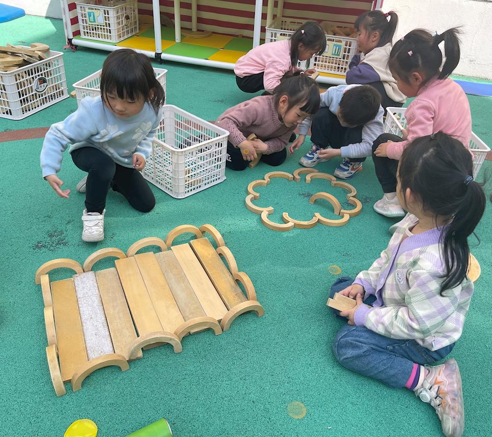 一起来搭积木吧。看,我们搭建的“社区”漂亮吗?